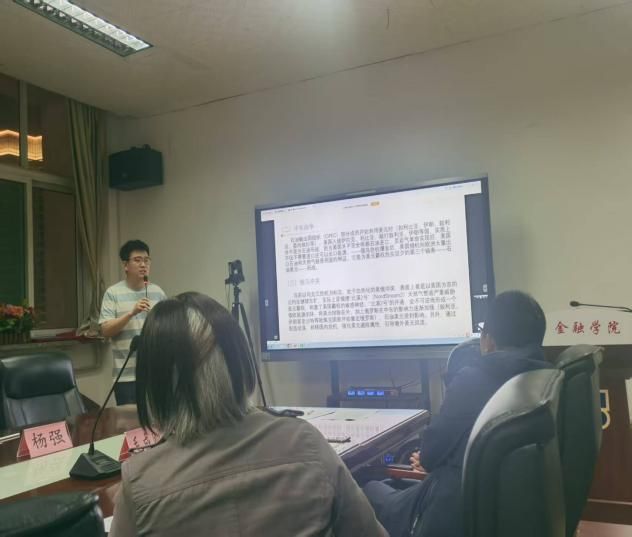 随后,彭钢同学结合中东战争、俄乌冲突及全球贸易战等国际时政热点,对美元霸权的现实表现进行补充解读,重点阐述了中国在面对美元霸权挑战时采取的应对措施。他立足时政背景,从创新驱动、石油人民币结算体系、新能源人民币计价机制、债券市场发展、央行数字货币与金融基础设施协同、汇率制度与资本项目开放协调等多个维度,系统总结了中国正在推进并将持续深化的人民币国际化路径,并列举了一系列具有实践意义的具体举措。最后,彭钢同学援引中国人民大学国际关系学院副院长翟东升的“国运即我运”论断,指出在当前国际形势复杂多变、中美战略博弈持续演进的历史进程中,“国运即我运”的时代命题对金融学子提出了新的使命要求,寄语大家将所学专业知识融入时代发展大局,在未来职业发展中找准定位、施展才华,成就更大作为。