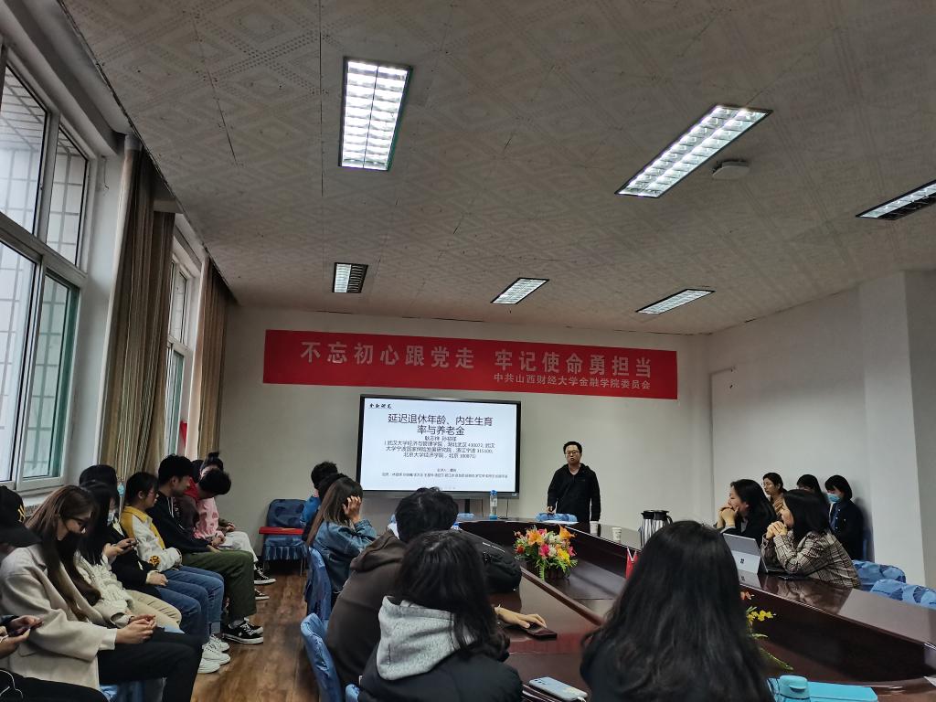 betway88西汉姆网页2020-2021学年第二学期第2期学术沙龙活动于2021年04月06日晚在学院会议室如期举行。本次沙龙主题为“延迟退休年龄、内生生育率与养老金”,由2020级保险专硕谭骁同学作为主讲人来为大家进行汇报讲解。此次学术沙龙很荣幸邀请到王华丽老师、闫丽瑞老师来担任讲评嘉宾。现场参加学术沙龙的有近80位来自betway88西汉姆网页各专业、各年级的研究生同学,现场气氛十分活跃。