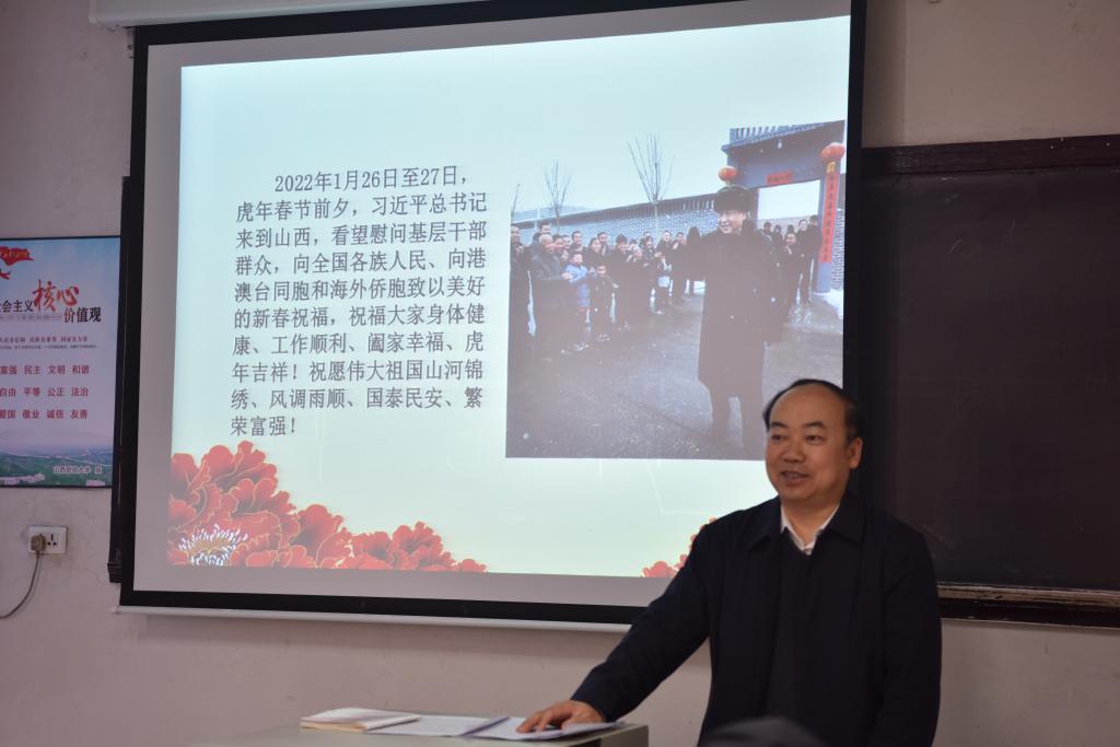 之后,沈沛龙副校长传达了山西省委第十二届三次全会的指示,他要求全体师生要深入贯彻落实习近平总书记关于“灾后重建”、“农村现代化建设”、“弘扬优秀传统文化”,以及“清洁低碳发展”的重要指示,继承与弘扬晋商文化,以实际行动助力山西中部城市群高质量发展取得新进展。此外,沈沛龙副校长还带领大家学习了党的十九届六中全会决议,他列举了我党在四个历史时期所取得的重大成就,并就党的历史成功经验和新时代如何面对新挑战分享了自己的心得体会。