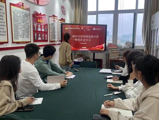 “坚定道路自信、理论自信、制度自信、文化自信”等十一个方面的内容的阐释凸显了“中国共产党领导是中国特色社会主义最本质的特征”和“新时代坚持和发展中国特色社会主义”的重要性,最后由支部成员崔梓轩做总结发言。