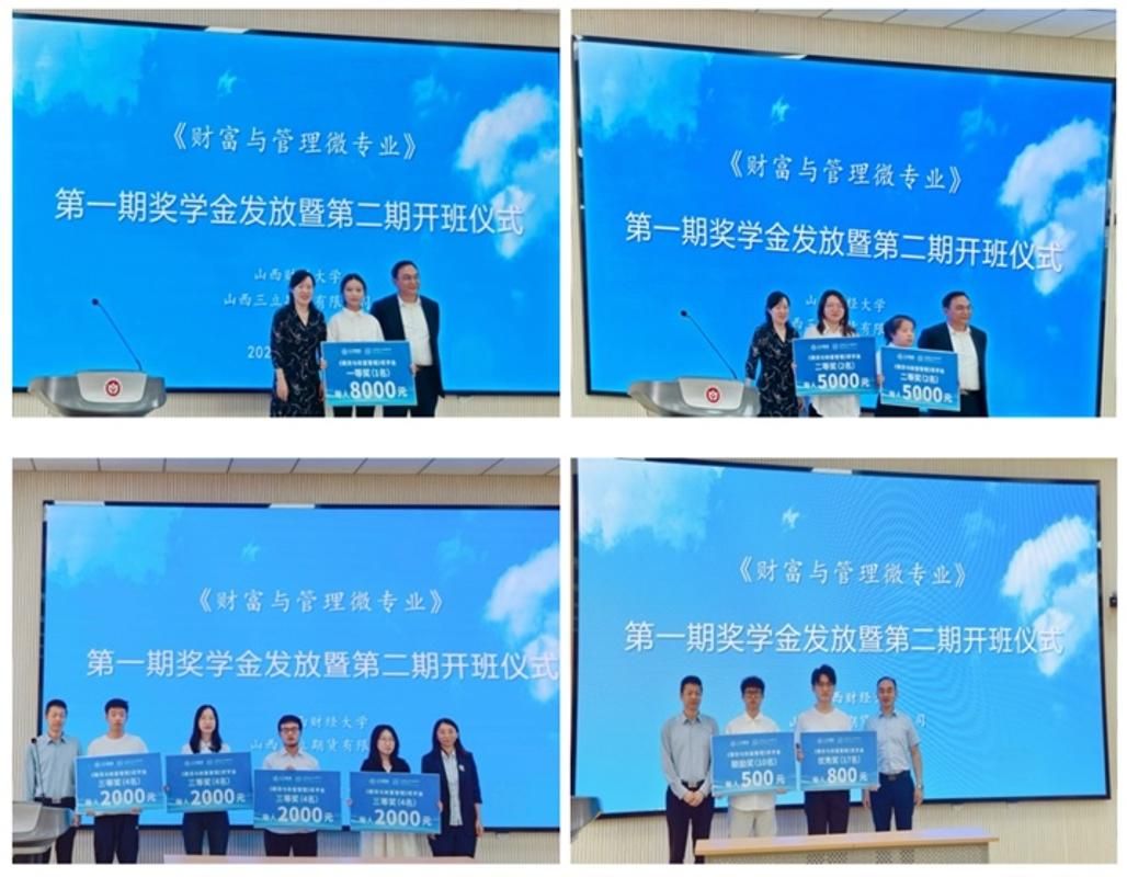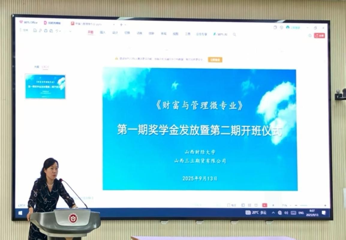 9月13日上午,我校首届“期货与财富管理”微专业奖学金发放暨第二届开班仪式在修德楼203阶教室举行。betway88西汉姆网页院长李静萍教授、副院长芦锋教授,山西三立期货有限公司副总经理史海兵、首席风险官魏春苓、财务总监田军卫等相关部门负责人,以及微专业第一期与第二期全体师生共同参加。开班典礼由betway88西汉姆网页院长助理王朗主持。