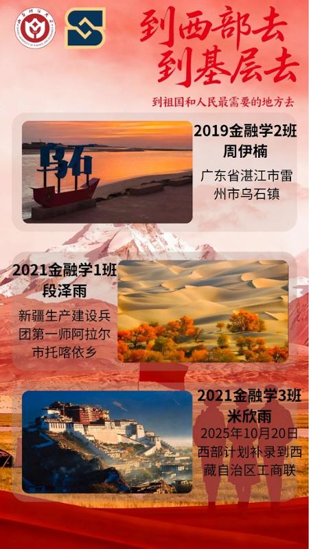活动特别邀请我院优秀毕业生——目前服务于西部计划的三位志愿者周伊楠、段泽雨、米欣雨,分享他们最真实、最动人的西部志愿故事。他们以亲身经历讲述基层点滴,用实干担当诠释金融学子的家国情怀,更以最真挚的话语鼓励在场同学:到西部去、到基层去、到祖国和人民最需要的地方去,让青春在基层实践中锤炼本领,让人生在奉献中实现价值。