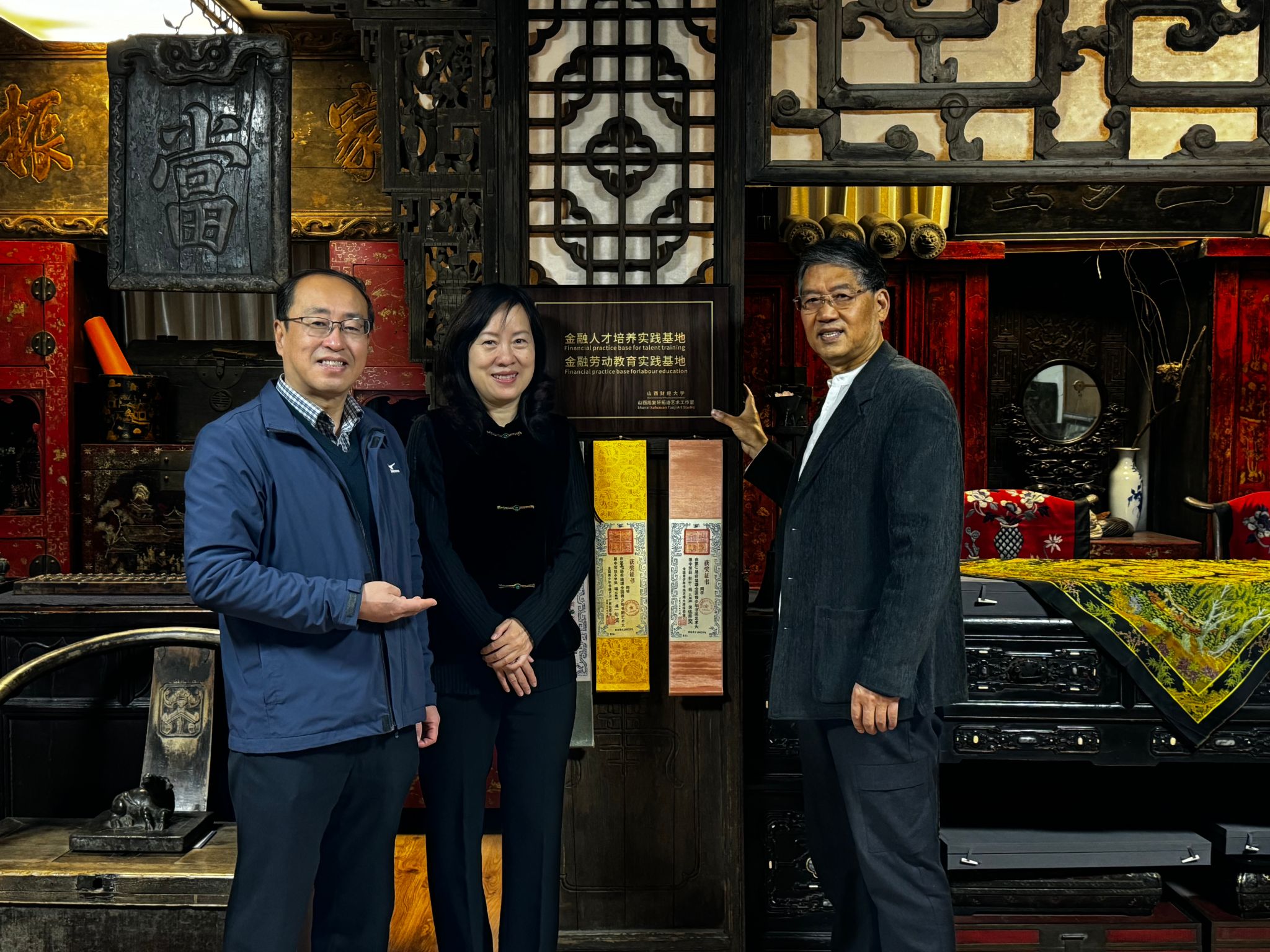 2023年11月28日上午,betway88西汉姆网页主要负责人赴山西省旭复轩拓迹艺术工作室,与该工作室主要负责人陈旭教授签订《共建人才培养实践基地和劳动教育实践基地》并举行挂牌仪式。