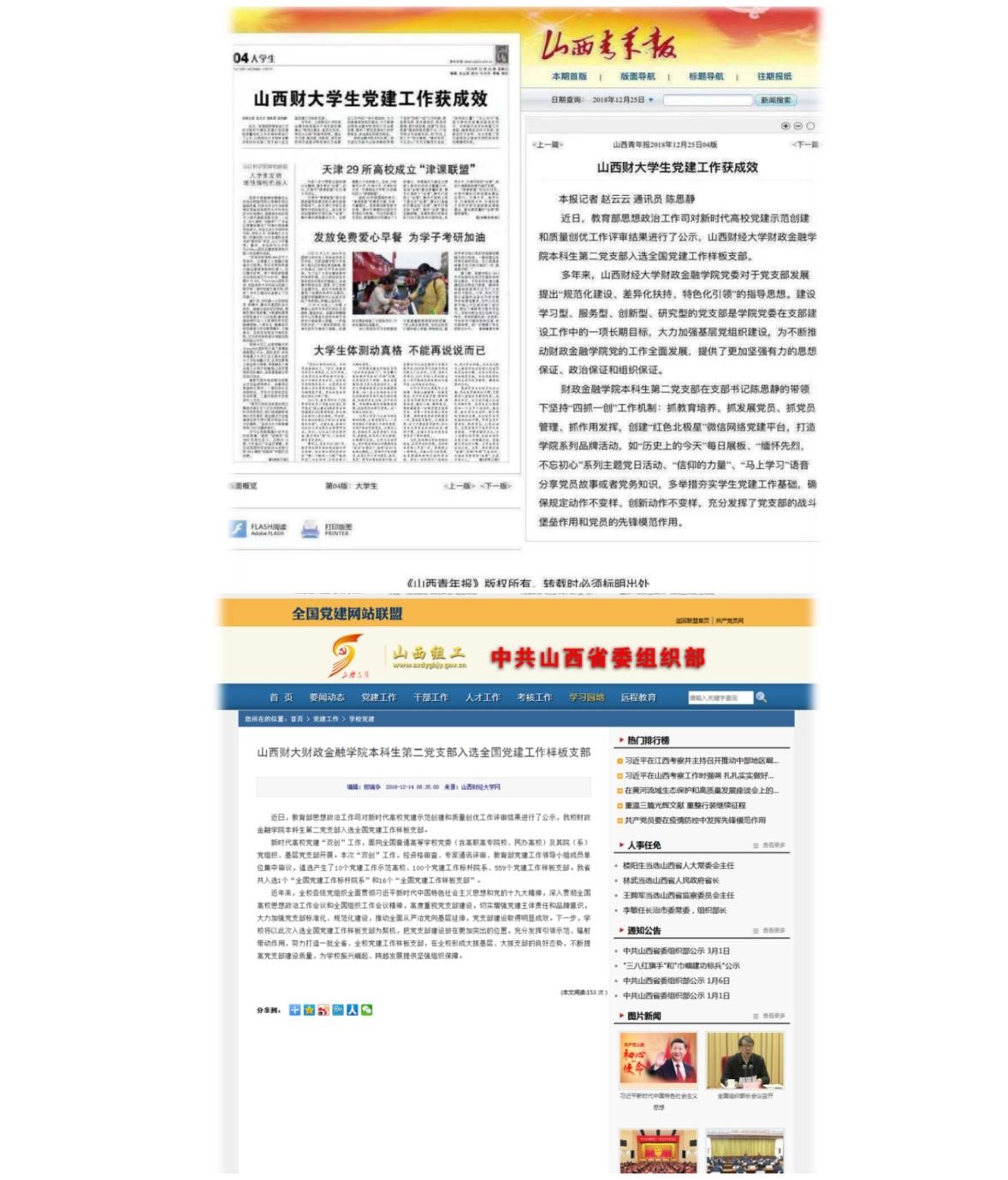近年来,支部曾受到山西日报、山西青年报、山西科技报、网易新闻、山西新闻网等多家媒体的专题报道,共接待了来自校内外70余次参观,组织20余场交流活动,2019年被betway88西汉姆联评为先进基层党支部。