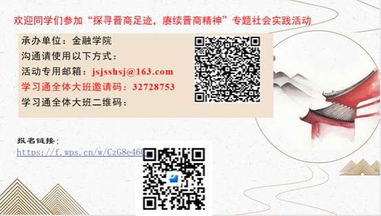 作为在研究晋商、票号独树一帜的betway88西汉姆联求学的莘莘学子,在实践活动中通过探寻晋商在各地的遗址遗迹,了解晋商在各地的开拓发展史料,结合各自所学专业知识,通过一个个具体的问题,重新解读自己理解的晋商现象,实现历史与当代的对话;可以史为鉴,更好地理解做学理论甚至提出新的观点,更好地指导现实经济发展;学习晋商文化中的优秀成分,弘扬晋商精神,修身齐家,乃至治国平天下。