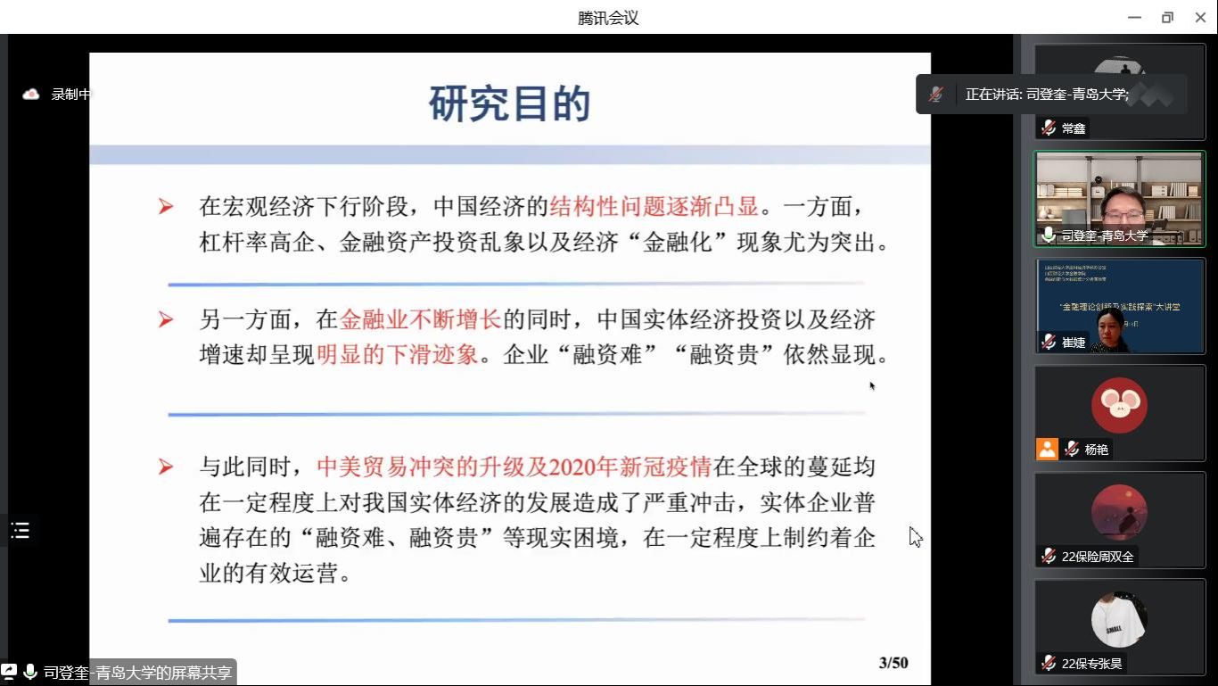 2022年11月17日晚上19:00时,betway88西汉姆网页举办了“金融理论创新及实践探索”大讲堂,由于疫情原因,会议通过腾讯会议的方式举办。