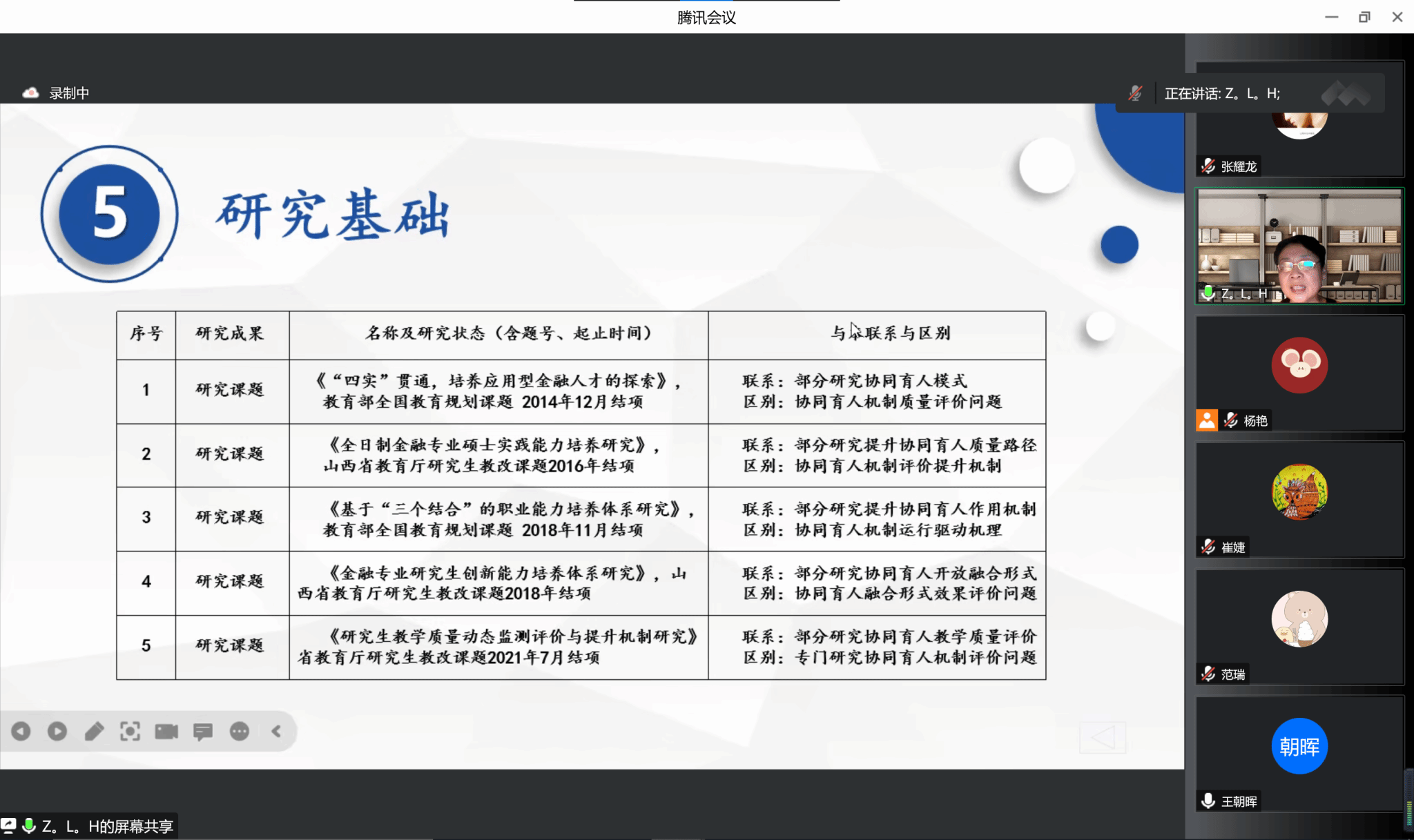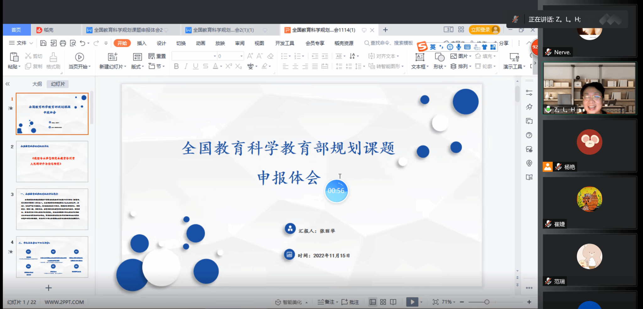 会议伊始,张丽华教授详细介绍了全国教育科学教育部规划课题申报的基本要求,紧接着结合自己的申报经历对申报表分六部分进行了讲解。张丽华教授着重阐述了课题设计论证和研究基础所面临的问题,并根据全国教育科学规划课题申报现状,给出了利用自身所长,选准题目等相关建议。
